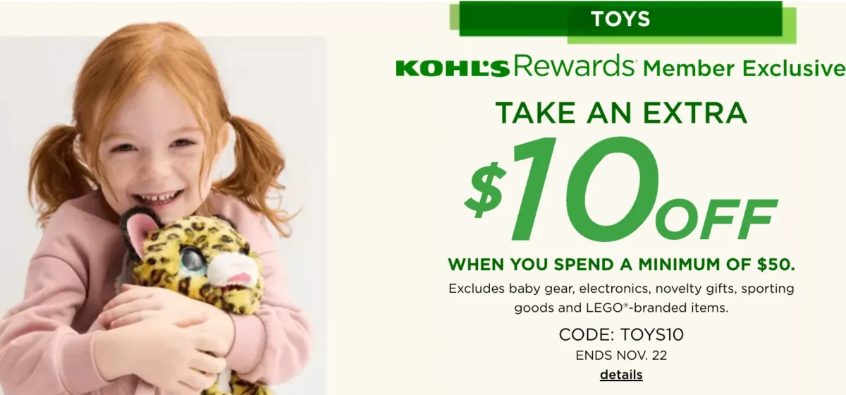 If you need to stock up on gifts or holiday toys TopSave has found a major rare deal at Kohl’s. Get $10 off your $50 toy purchase using a special coupon code. Plus Kohl’s is offering up to 50% off select toys right now. This is huge because toys are usually excluded from coupons and savings events. This limited-time flash sale and stacking coupon mean massive savings for you and your family. Don’t wait around because this offer ends very soon.