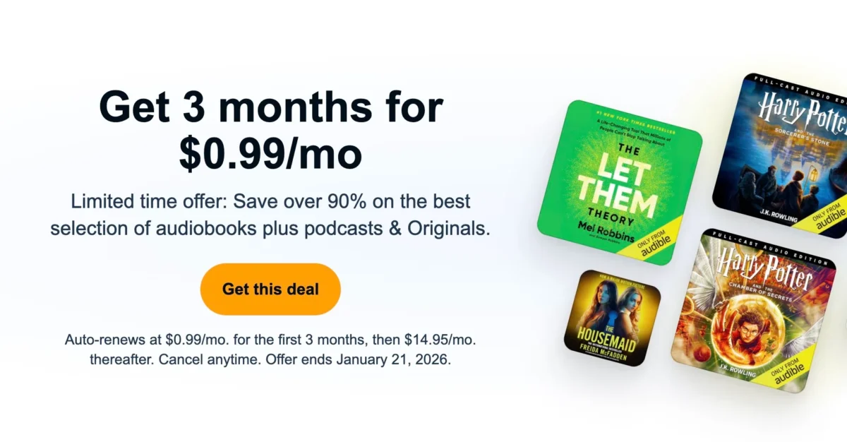 Do you love listening to stories while you commute or do chores around the house? You can grab a fantastic discount on an audiobook membership right now. Amazon is offering three months of Audible Premium Plus for just under a dollar per month. This is an amazing chance to enjoy bestsellers and originals without paying the full subscription price. Be sure to act fast because this limited time offer ends soon.