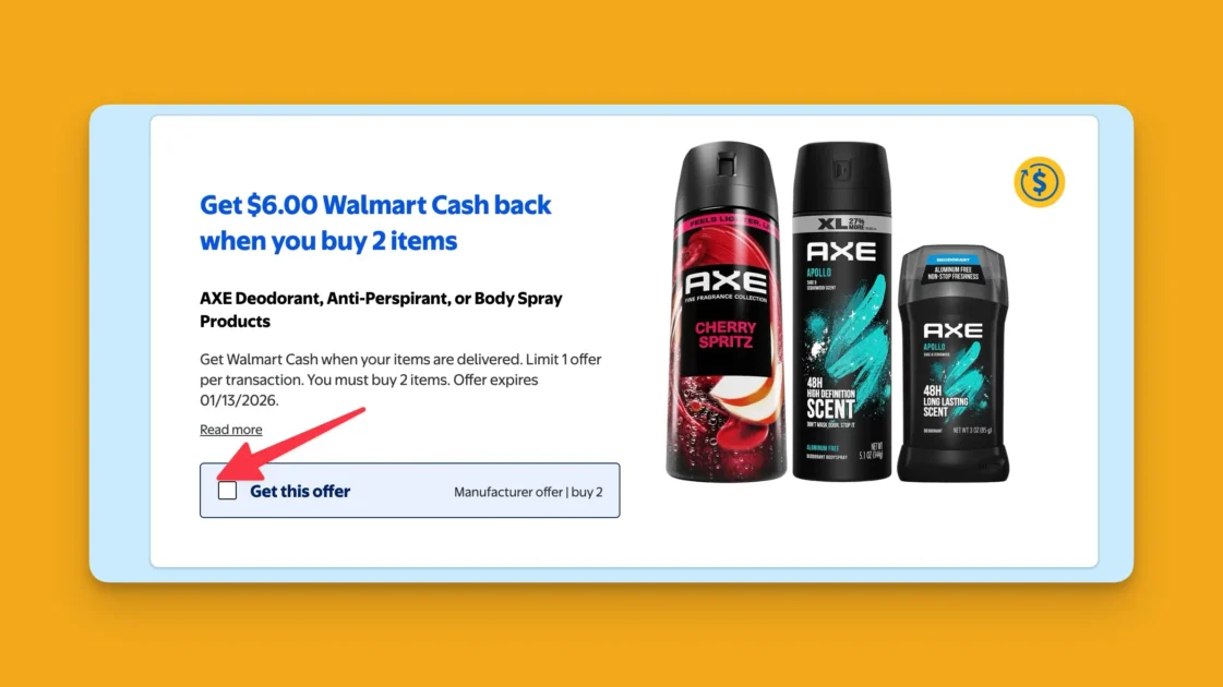 Smelling fresh is easy with this incredible offer on Axe Deodorant at Walmart right now. You can score two sticks for just $1.97 each when you take advantage of a high value Walmart Cash rebate. This deal requires you to buy two items to trigger the six dollar cashback reward making it an excellent time to restock your bathroom cabinet. These digital coupons often vanish fast so be sure to claim yours while it is still available.