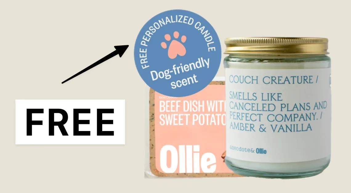free custom anecdote candle + 60% OFF Ollie