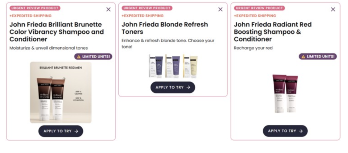 PinchMe has a new freebie offer featuring John Frieda hair products with no coins needed and expedited shipping. This is a 100% free sample deal with no payment required and no shipping fees. PinchMe is legit and simply asks members to share feedback after trying the samples.