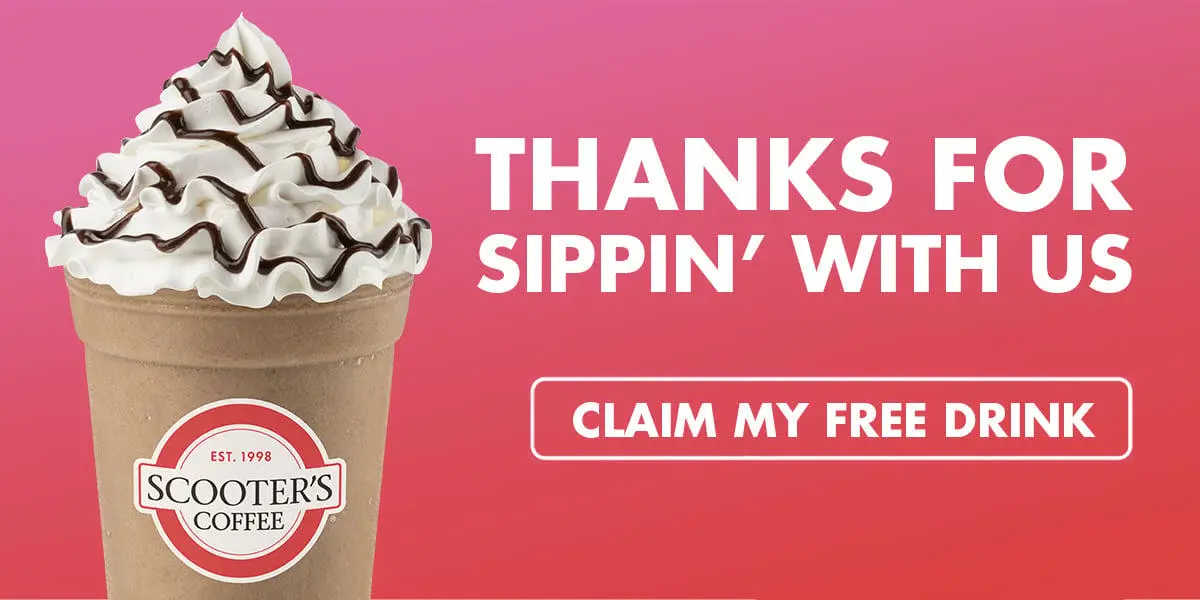 Sign up now and enjoy your medium drink on the house — no purchase needed. Just download the Scooter’s Coffee app and start sipping!