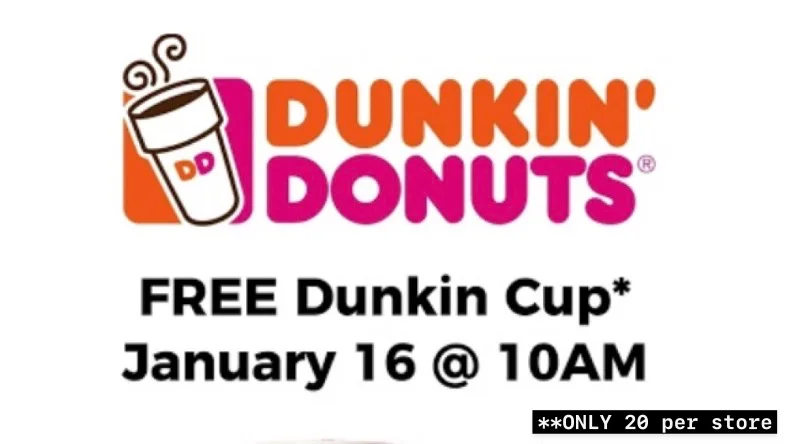 Free Reusable Cup at Dunkin w/ Purchase on January 16th