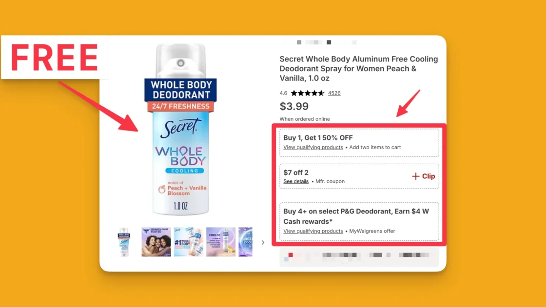 Get ready to freshen up for absolutely zero cost with this incredible offer from Walgreens You can score two sticks of Secret Whole Body Deodorant for free right now thanks to a high value digital coupon stack The store currently has these priced at buy one get one 50% off and when you clip the manufacturer offer the total drops to nothing This deal works for online pickup or shipping orders so fill your cart before supplies run out