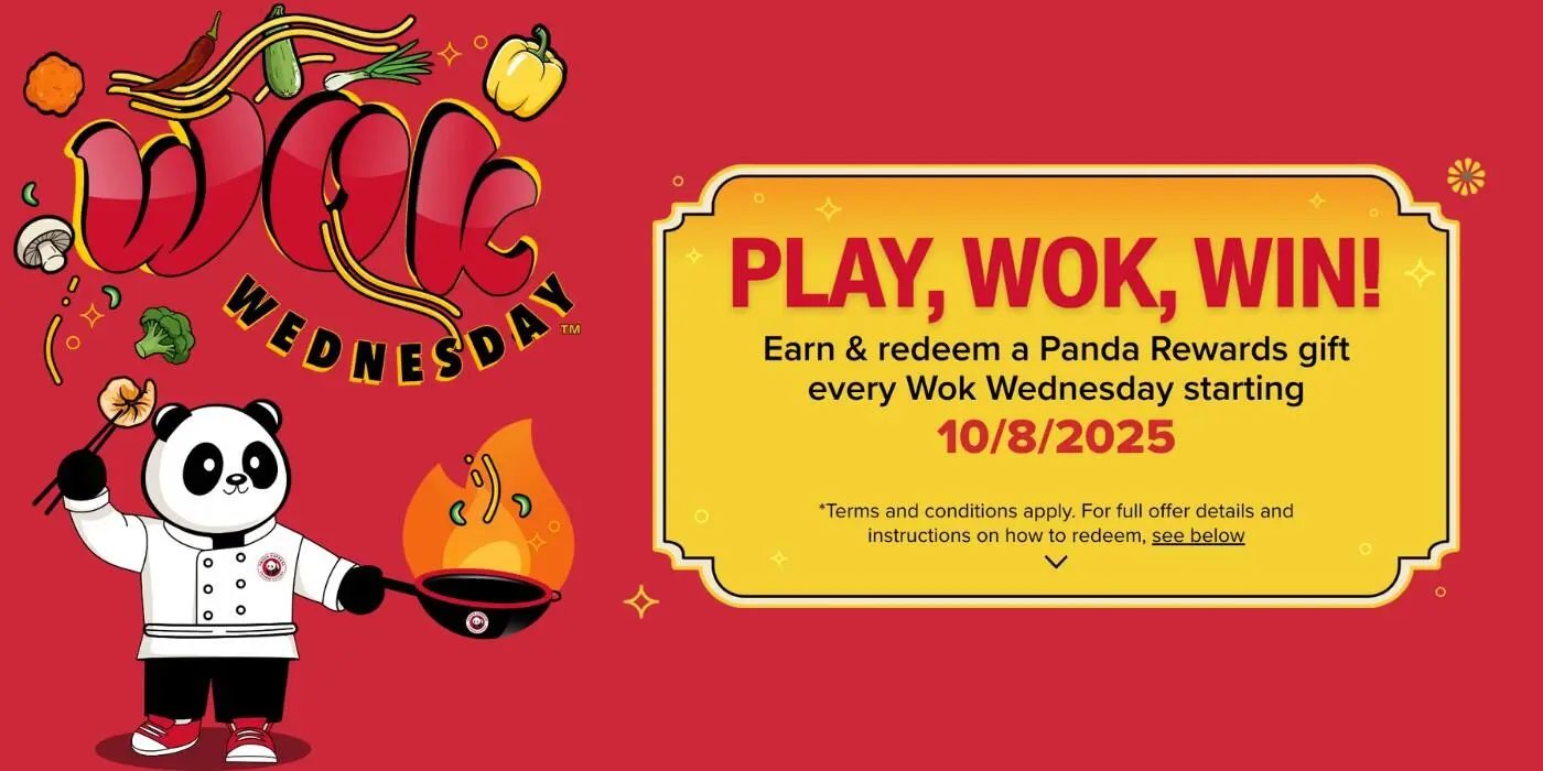 Panda Express Rewards members. Available every Wednesday starting October 8th, 2025. Check Panda Express website for full details and any restrictions.
