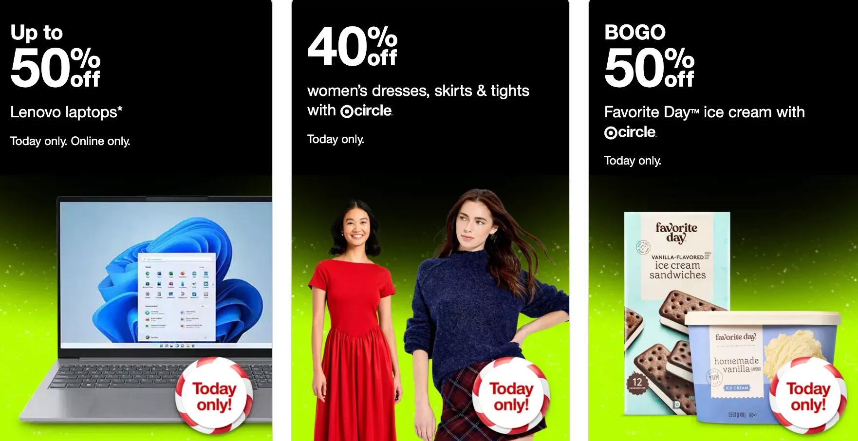 Don’t miss the amazing Target Deal of the Day happening now. Today only November 26th you can grab huge discounts perfect for restocking your closet and pantry. Score 40% off women’s dresses and skirts immediately. Plus stock your freezer because pizza and ice cream are Buy One Get One 50% off. You can even find savings up to 60% off select laptops and electronics. This flash sale ends tonight so shop fast and save big money instantly.