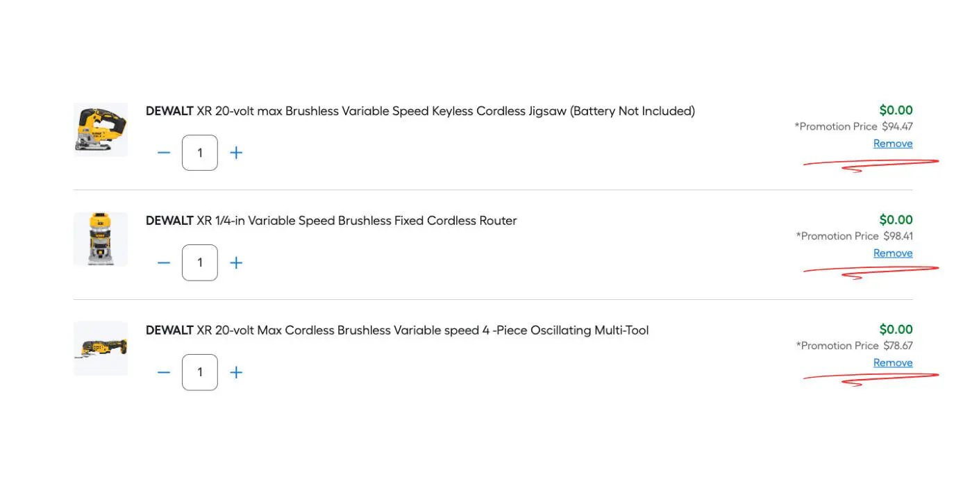 - Three FREE Dewalt Tools: Choose from a selection of tools regularly priced up to $249 EACH.